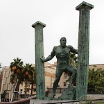 세우타(Ceuta)는 아프리카 북단 지중해 연안에 위치한 작은 도시로, 모로코(Morocco)와 국경을 맞대고 있는 스페인(Spain)의 자치령입니다. 지중해 너머 스페인 본토와 지브롤터(Gibralta)가 보이는 위치에 자리하고 있으며, 지중해에서 대서양으로 나아가는 지브롤터 해협의 입구 역할을 하고 있어 예로부터 지브롤터와 함께 헤라클레스의 기둥(Pillars of Hercules)으로 불리고 있습니다. 스페인 국기에도 등장하는 헤라클레스의 기둥(국장의 양쪽에 그려진 기둥)은 지브롤터 해협 양쪽에 서있는 산(山)인 세우타와 지브롤터를 말하는데, 원래 하나로 이어져있던 아프리카(세우타)와 유럽(지브롤터)을 헤라클레스가 갈라놓았다고 해서 헤라클레스의 기둥으로 불립니다. 그래서 세우타 시내 한가운데 이렇게..